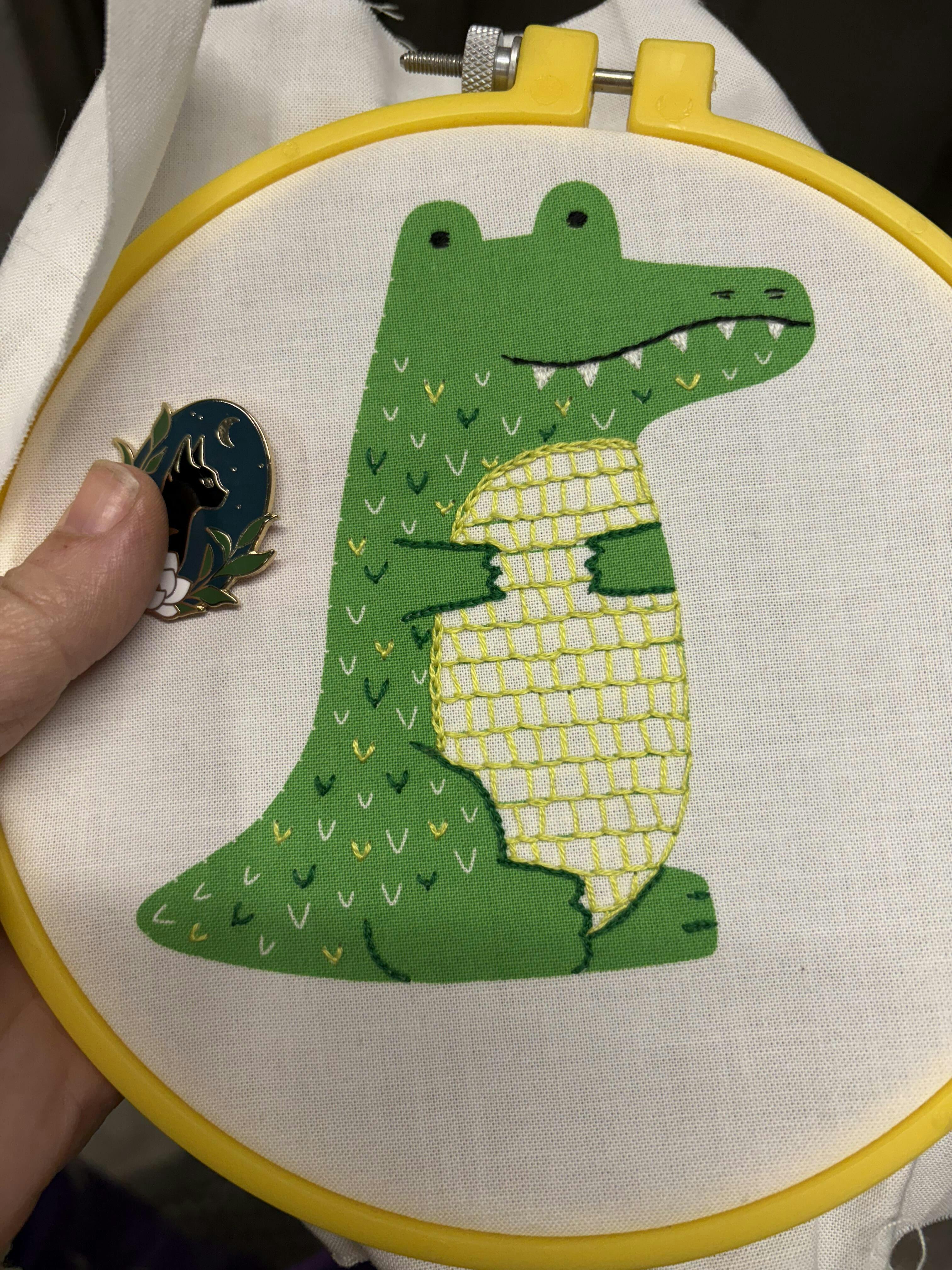 Alligator is a Level 2 pattern, using basic and intermediate stitches.