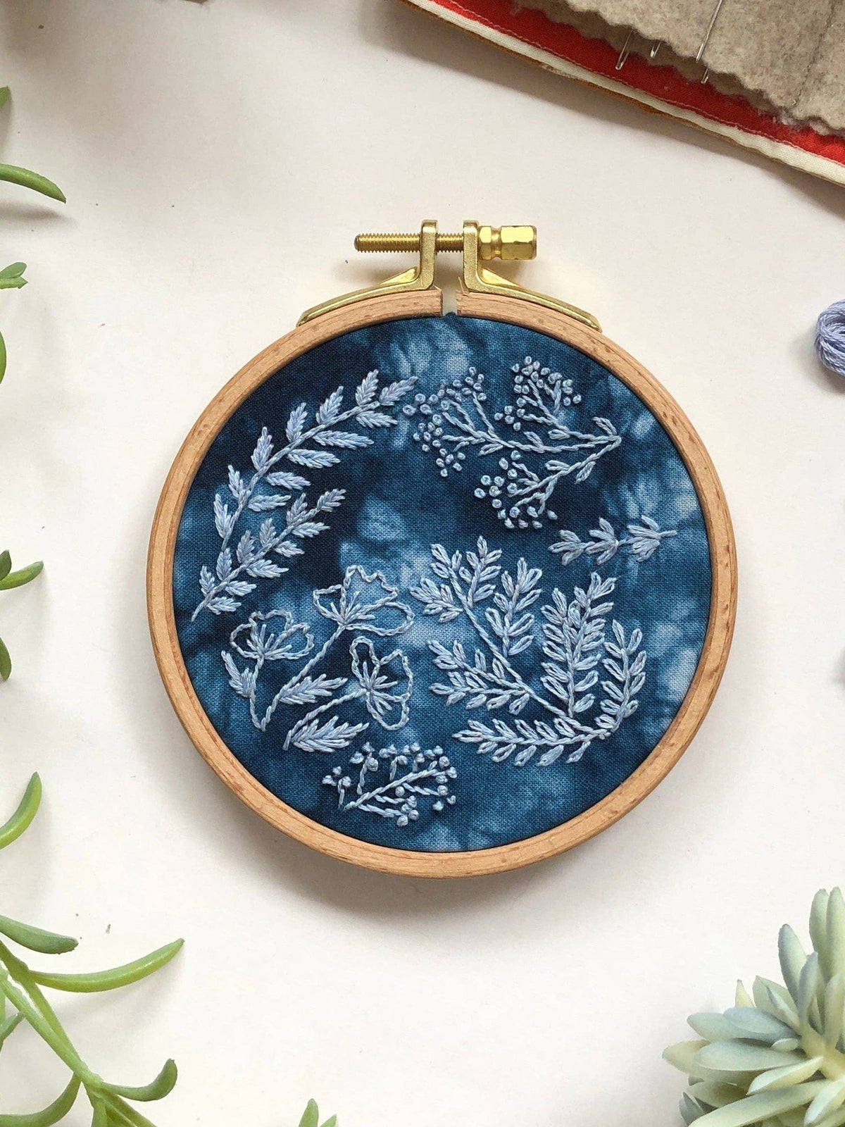 4" Beginner Cyanotype Botanicals Embroidery Kit