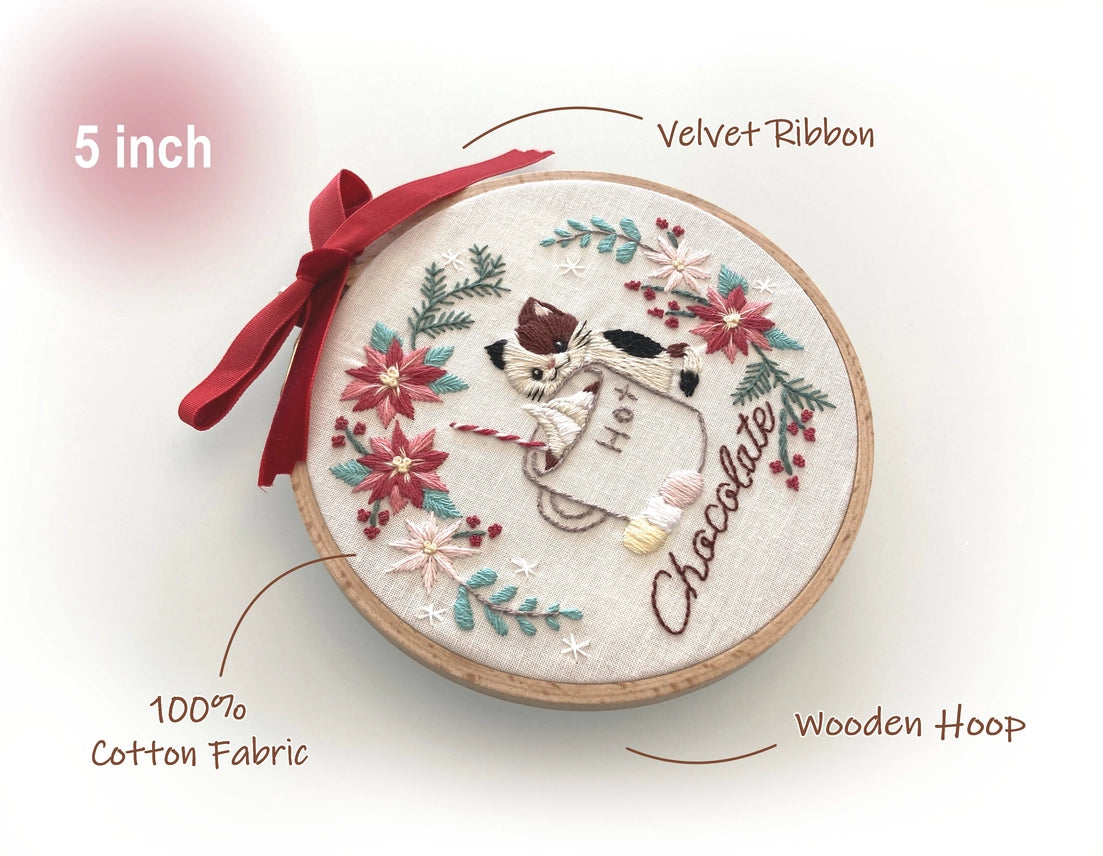 5" Hot Chocolate Cat Embroidery Kit