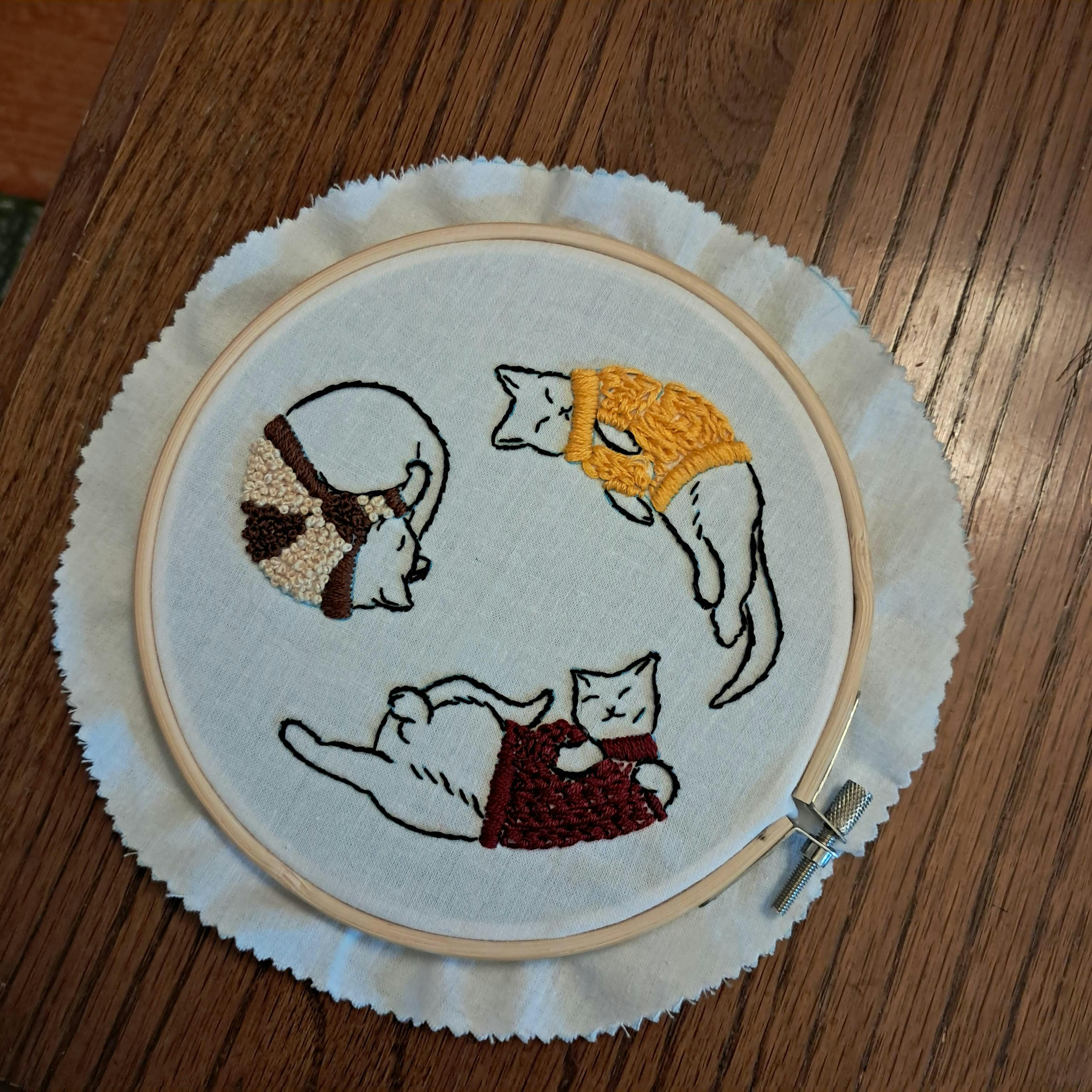6" Beginner "Cozy Sweater Kitties" Embroidery Kit