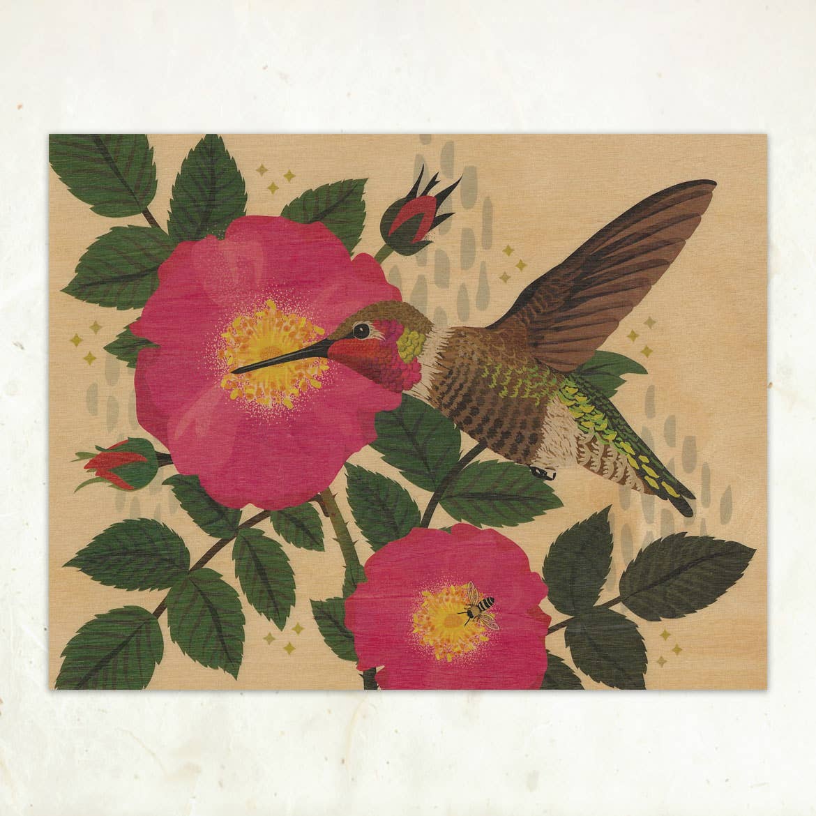 This is an original illustration printed on real wood veneer, which feels good in the hand and catches the eye with subtle textures, warm colors, and patterns of light. Each piece of wood gives the design a unique character; the complexity of the grain brings the art to life. Wood veneer is very sturdy and flexible so it holds up to the test of time – beautiful & practical – worth framing.